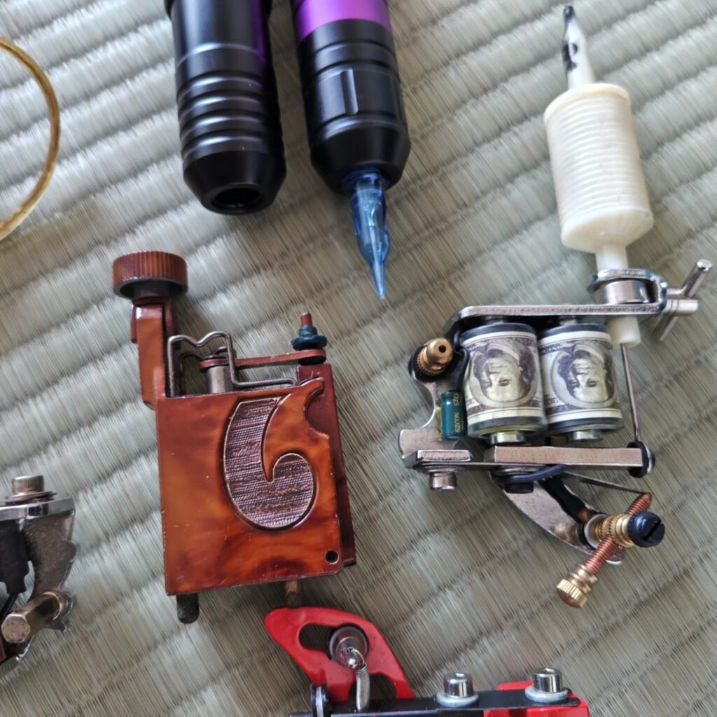 昔使われていたタトゥーマシーンは、細かい作業が難しくなられたため、手放すことにされたそうです。趣味で大切に集められていたお品物です。