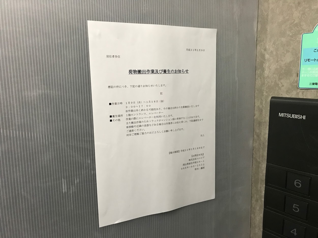 必要な場合は、マンションの掲示板などに「お知らせ」をこちらで作成して掲示させていただいておりま