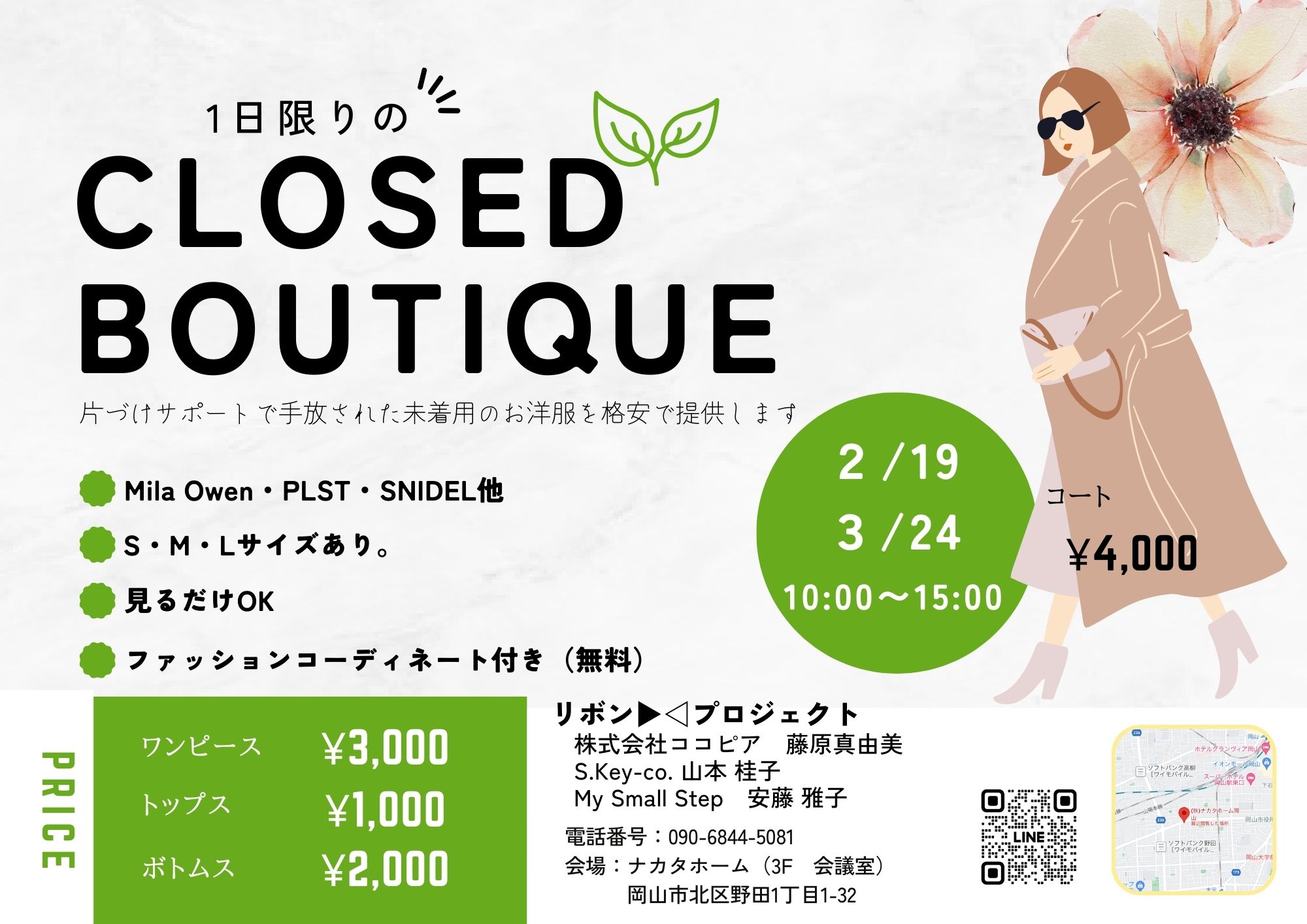 さらに当日は、大人気の「クローズドブティック(リユース販売会)」も同時開催いたします !