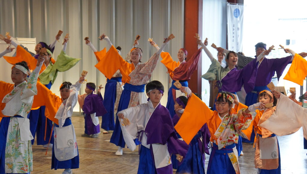 古着物を活用して制作された個性あふれる衣装をまとい、熱気あふれる演舞を披露。