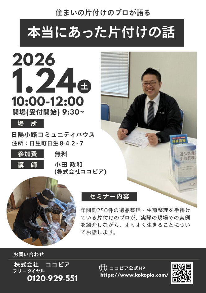 岡山・倉敷で遺品整理や生前整理を専門とするココピアです🐤