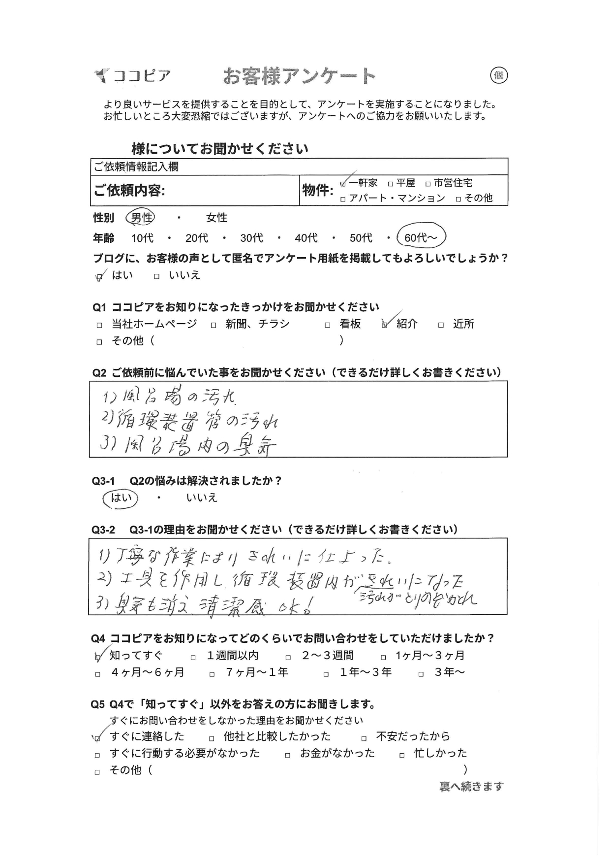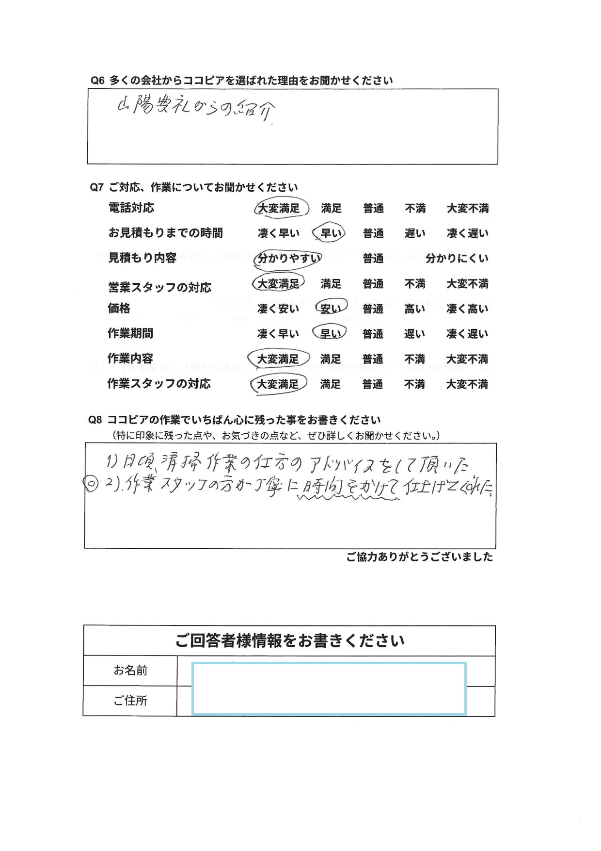 今回はクリーニングを行った岡山市南区 M・M様様から、アンケートのご回答をいただきましたので、アンケート内容と作業様子をご紹介させていただきます。