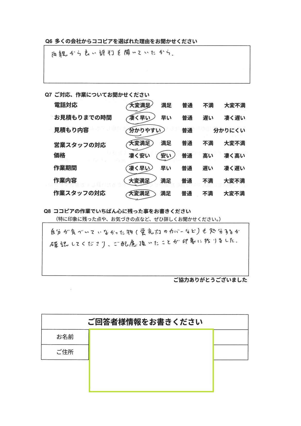 県内在住K・D様 この度はアンケートにご協力いただきありがとうございました!