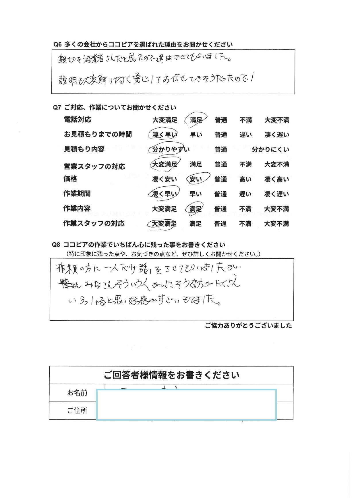 県内在住H・N様 この度はアンケートにご協力いただきありがとうございました!