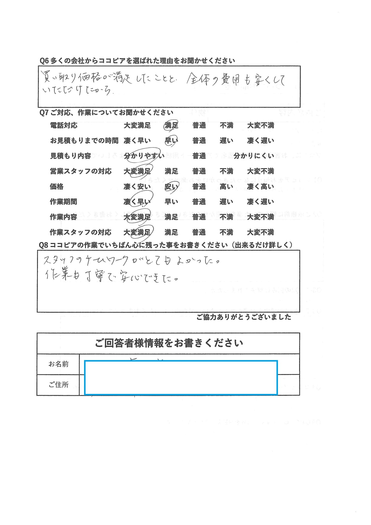 県内在住K・M様 この度はアンケートにご協力いただきありがとうございました!