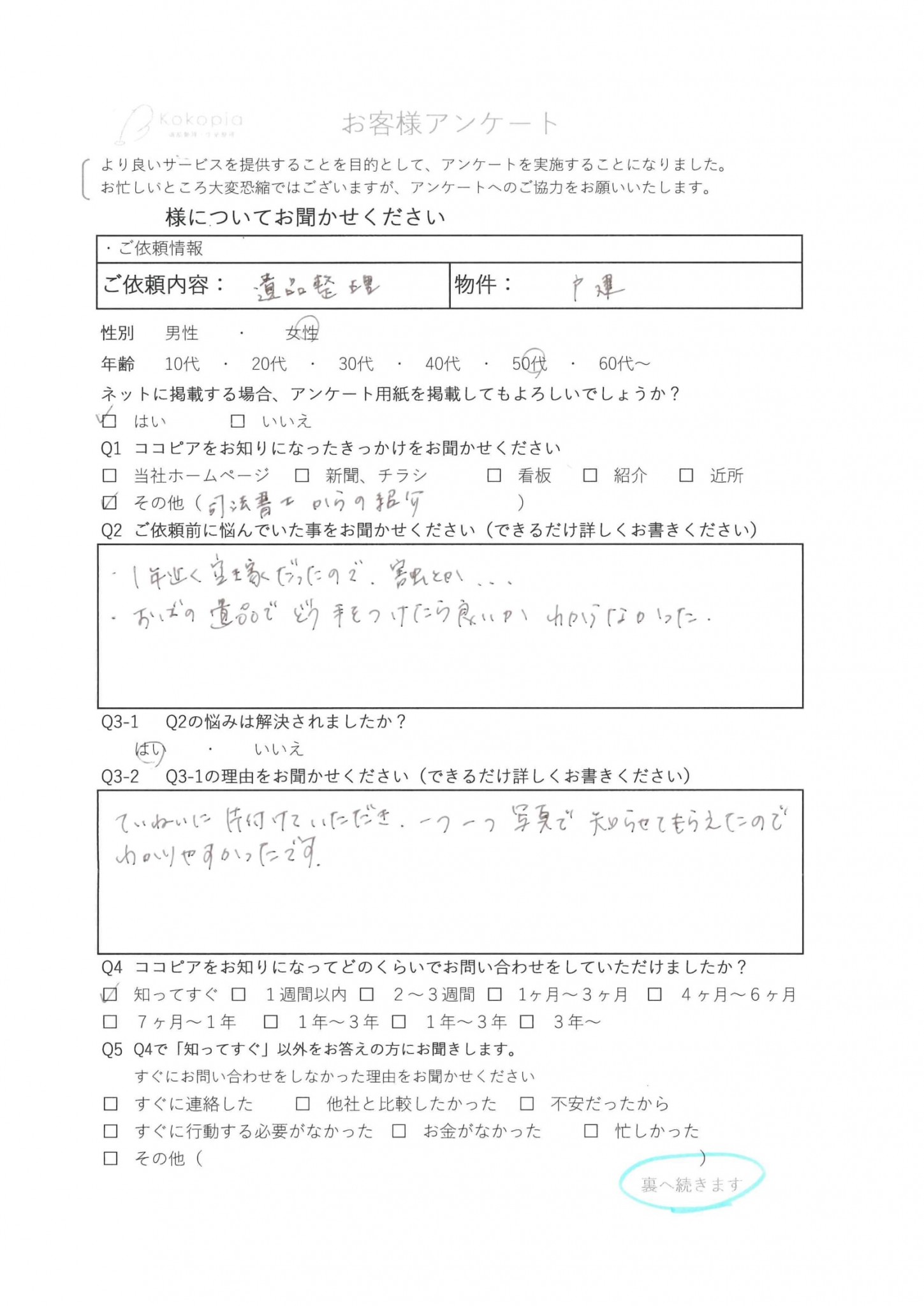 お客様の貴重なご意見は、ご検討されてる方や、「片付け」「整理」で悩まれてる方の参考になればと思います。