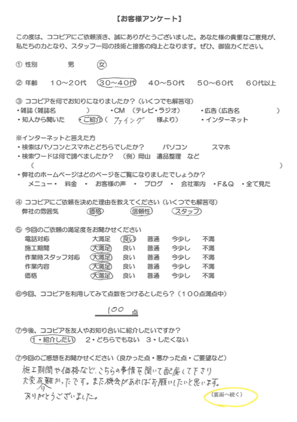 弊社で施工された方たちのお客様の声をご覧くださいませ。