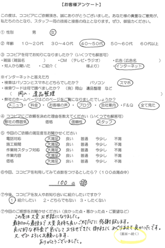 良心的な料金で安心してお任せできました御社にめぐりあえて良かったです。