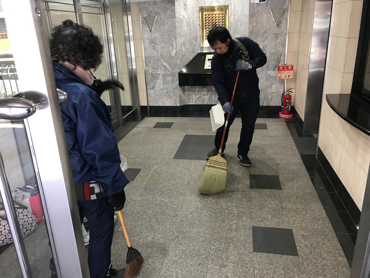 最後はマンションの玄関先までお掃除をして終了です。