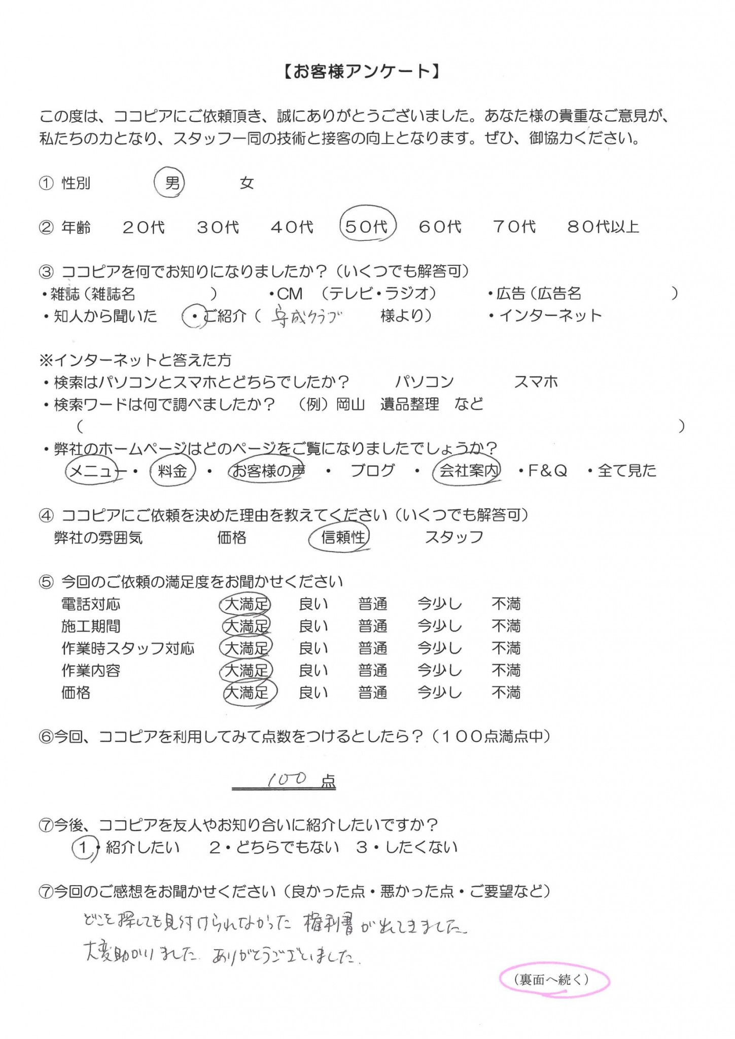 お客様が探していた権利書等も見つかり大変喜ばれました!!