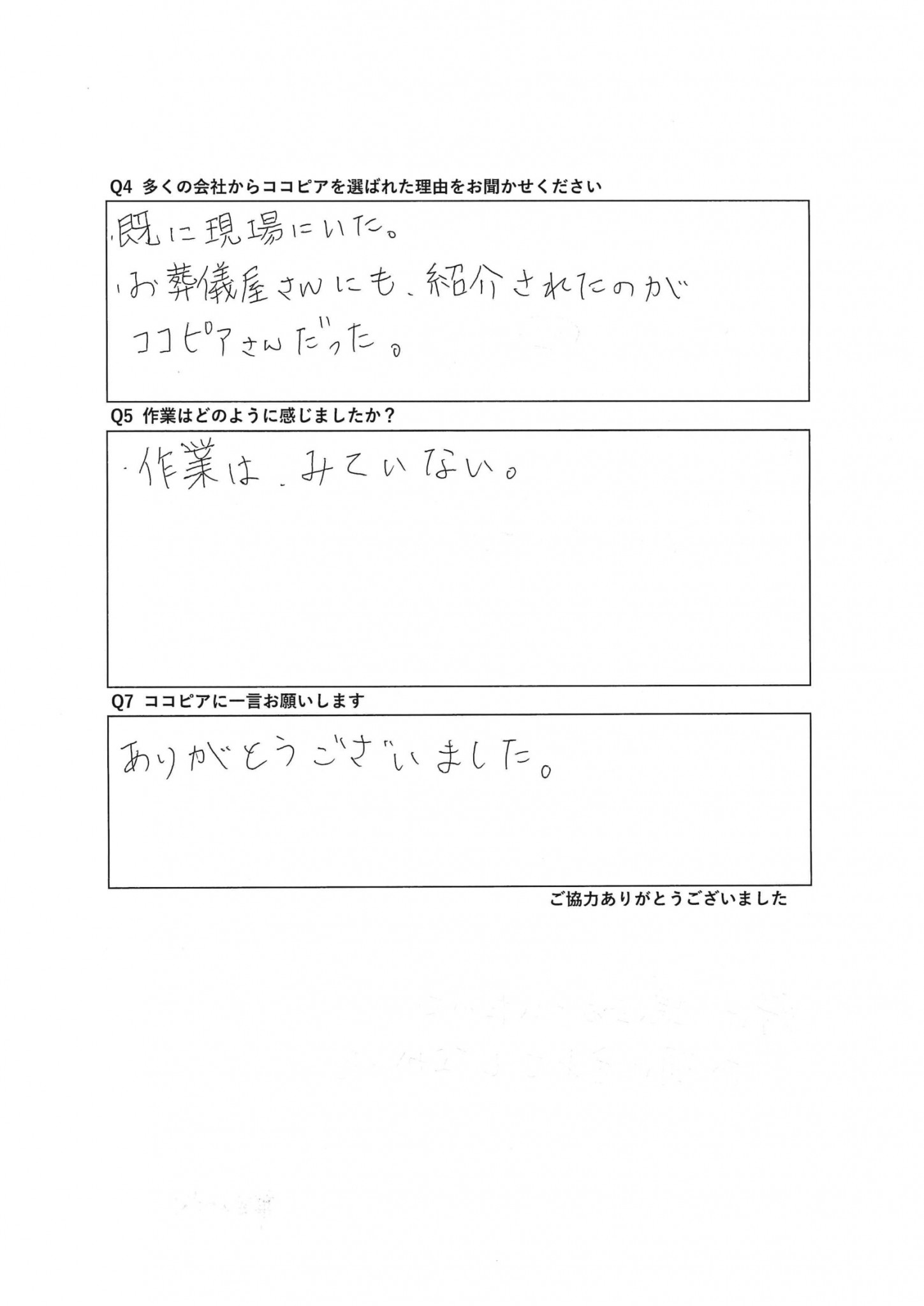 K様よりアンケートを頂きましたのでご紹介させていただきます。