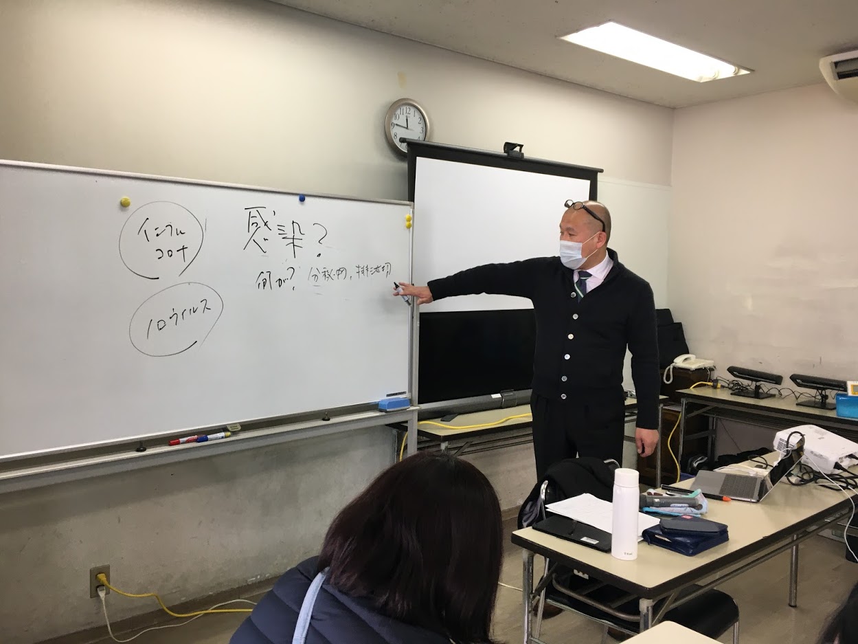 菌やウイルスは、どのようなルートで人から人へ感染するのか、ここをしっかりと理解した上で、お掃除の基本に進みます。
