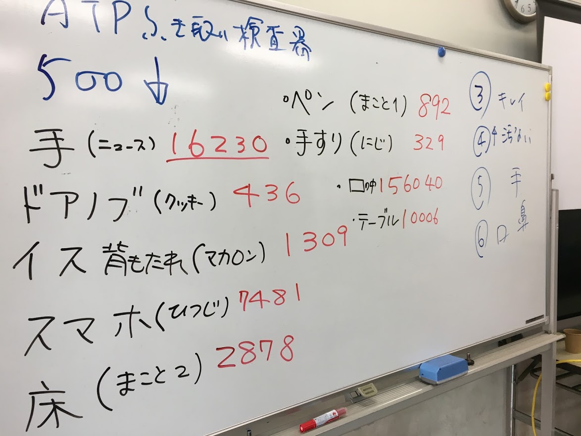 なかなかの数値が検出され、驚かれてましたが、様々なところにウイルスが潜む箇所がたくさんあるのです。